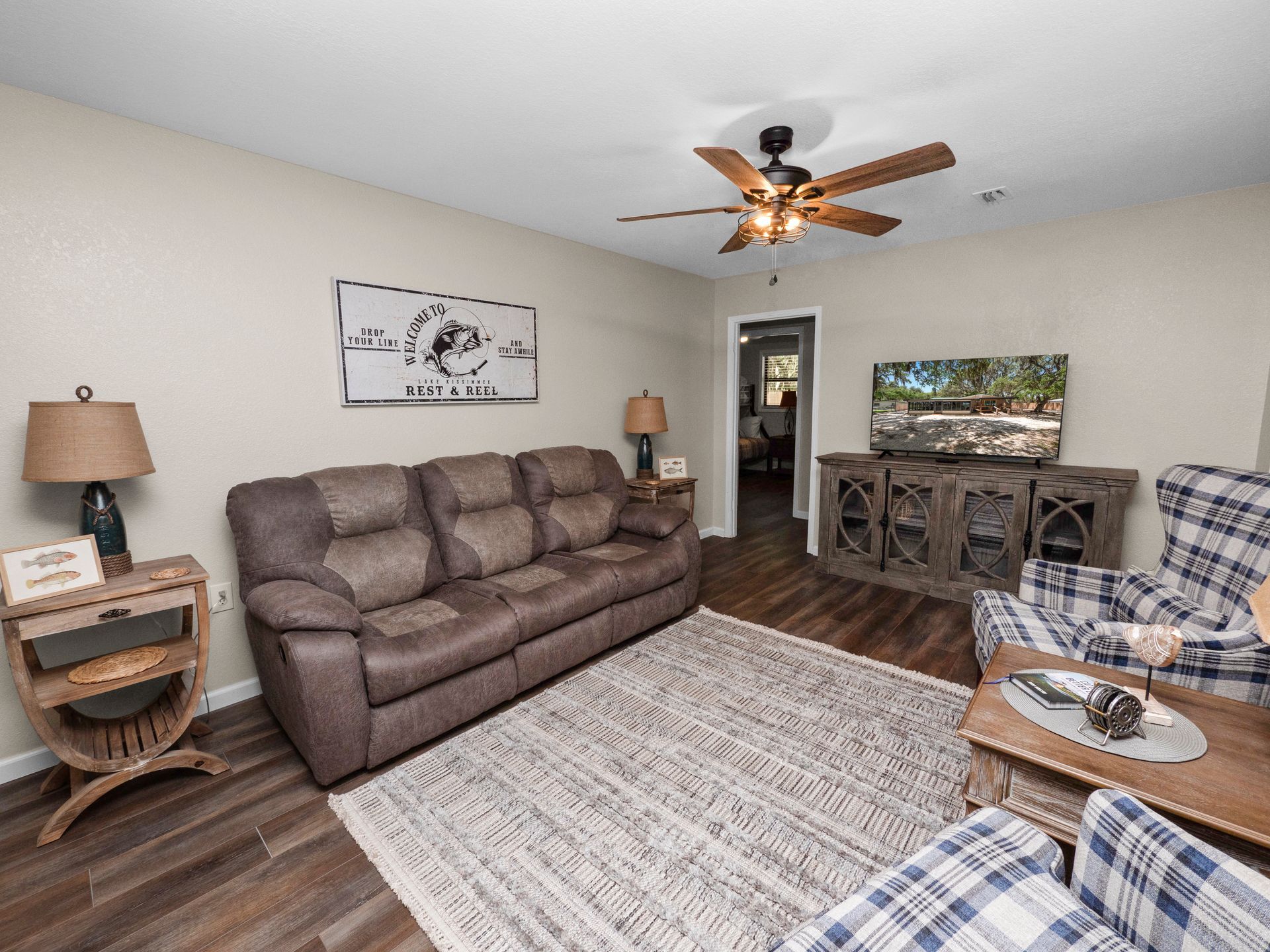 With its spacious sunroom, perfect for outdoor dining, and a boat dock with a lift for those who love the water, this home is an ideal retreat. Boat and fish on Lake Kissimmee or check out events at the Grape Hammock Fish Camp next door. After a day of adventure, relax in the cozy living room and plan your next day's activities. Don't miss the chance to experience this unforgettable 3-bedroom, 1-bath getaway in the heart of Florida!
